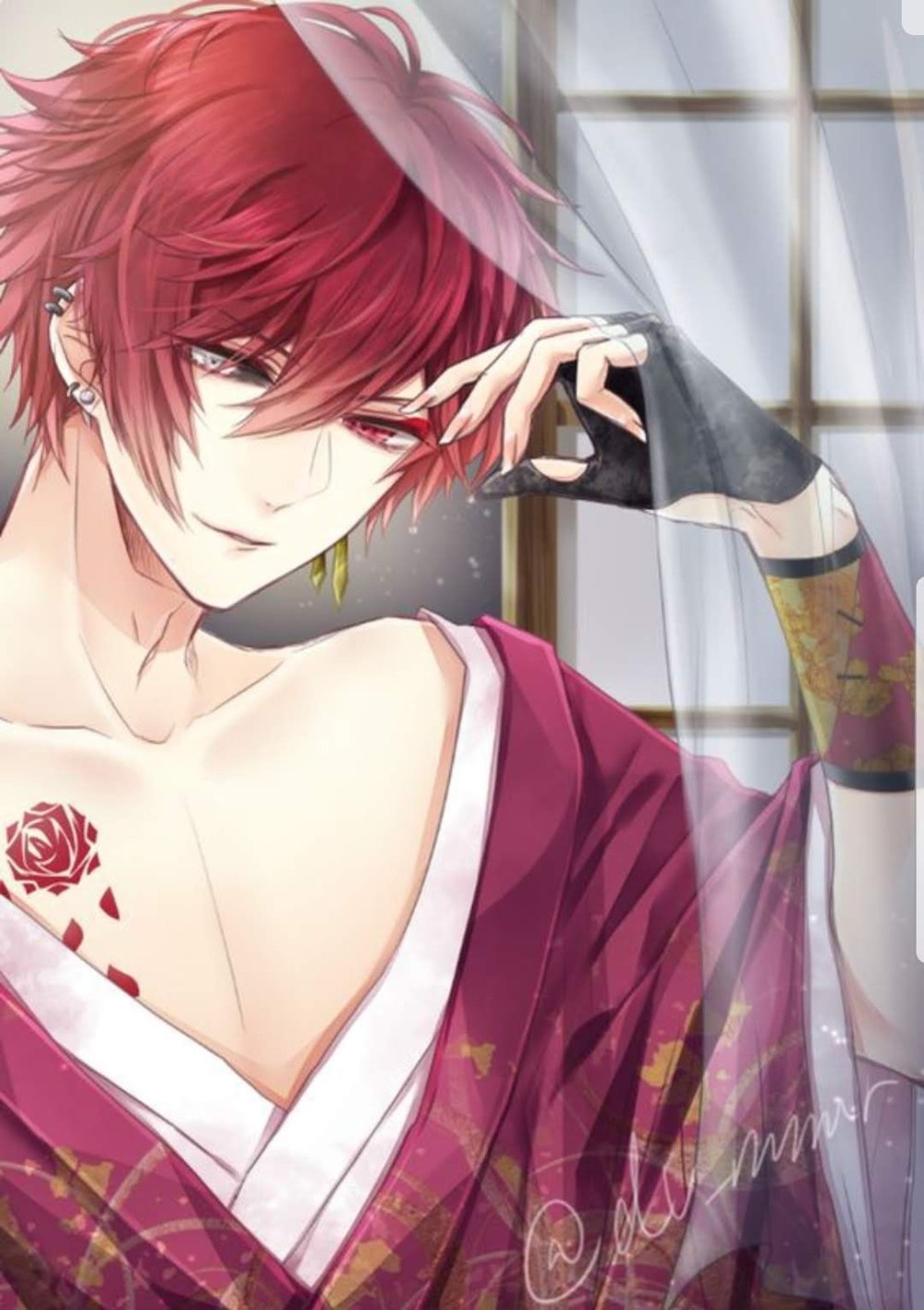 Аниме парни с красными волосами с розами