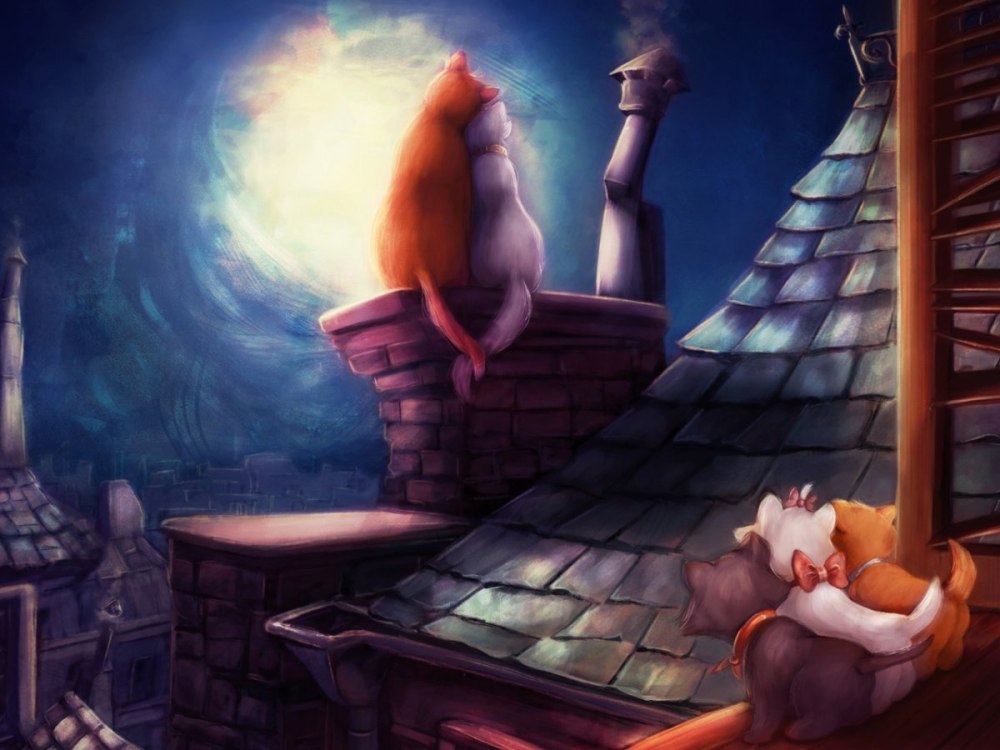 Картина коты на крыше ночью