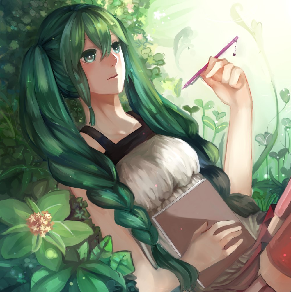Аниме парень с длинными зелеными волосами