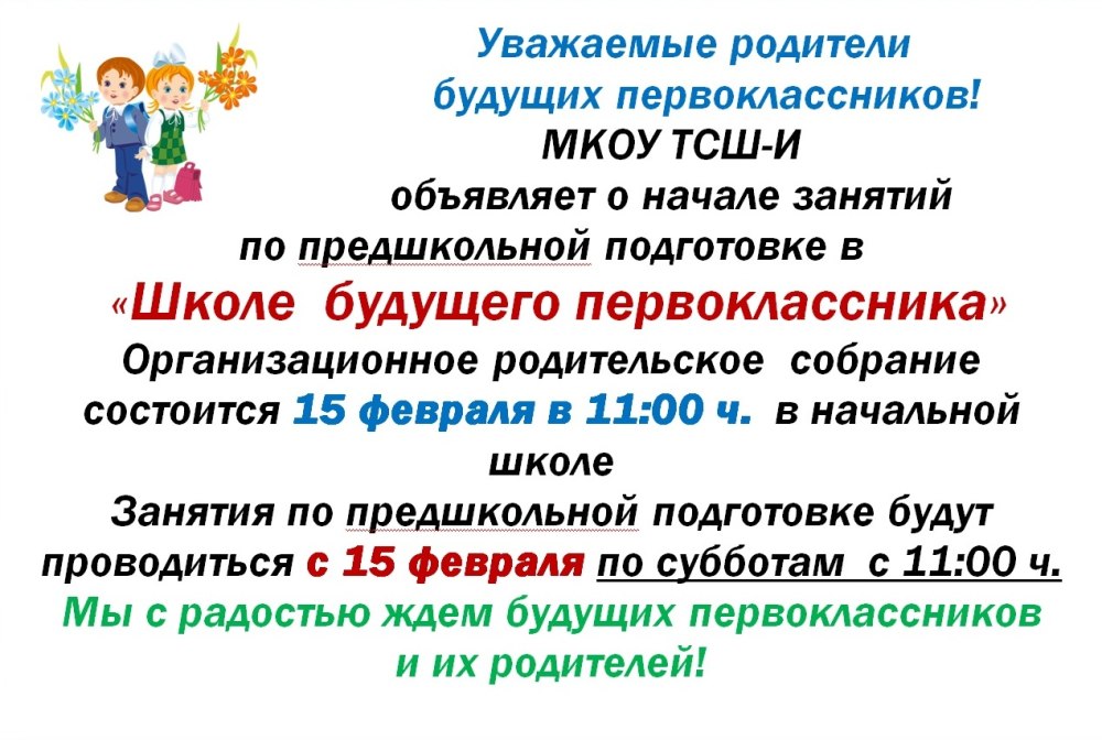 Объявление о родительском собрании будущих первоклассников в школе образец