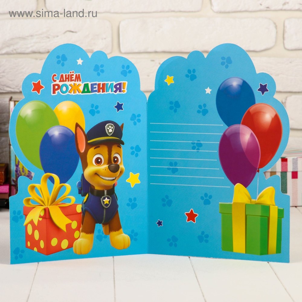 Открытка щенячий патруль с днем рождения