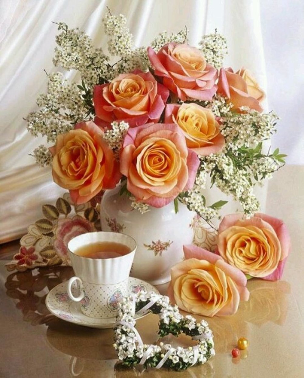 Кофе и розы с добрым утром