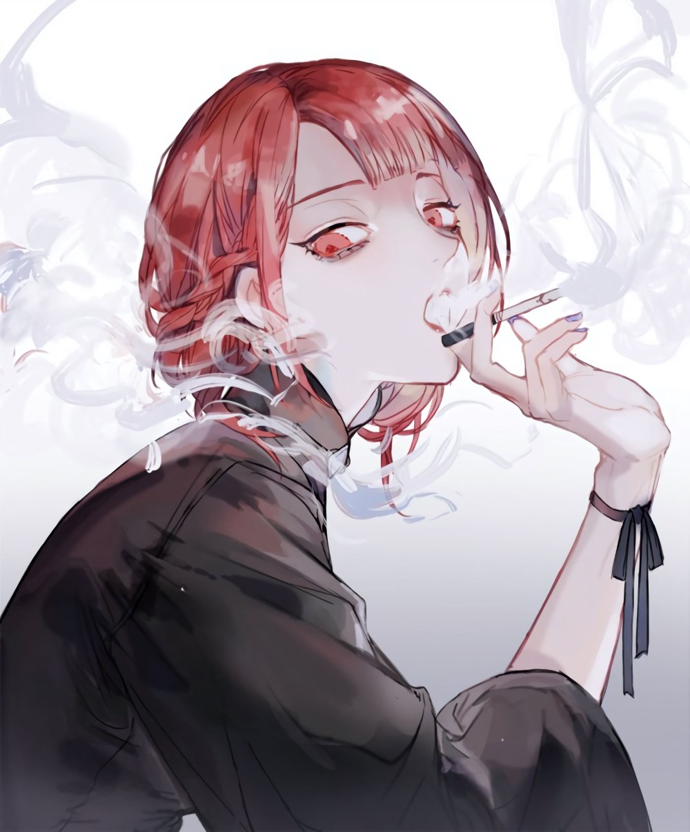 Курящая девушка аниме