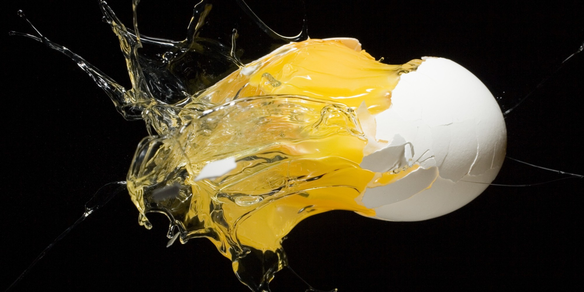 Разбитое яйцо на черном фоне