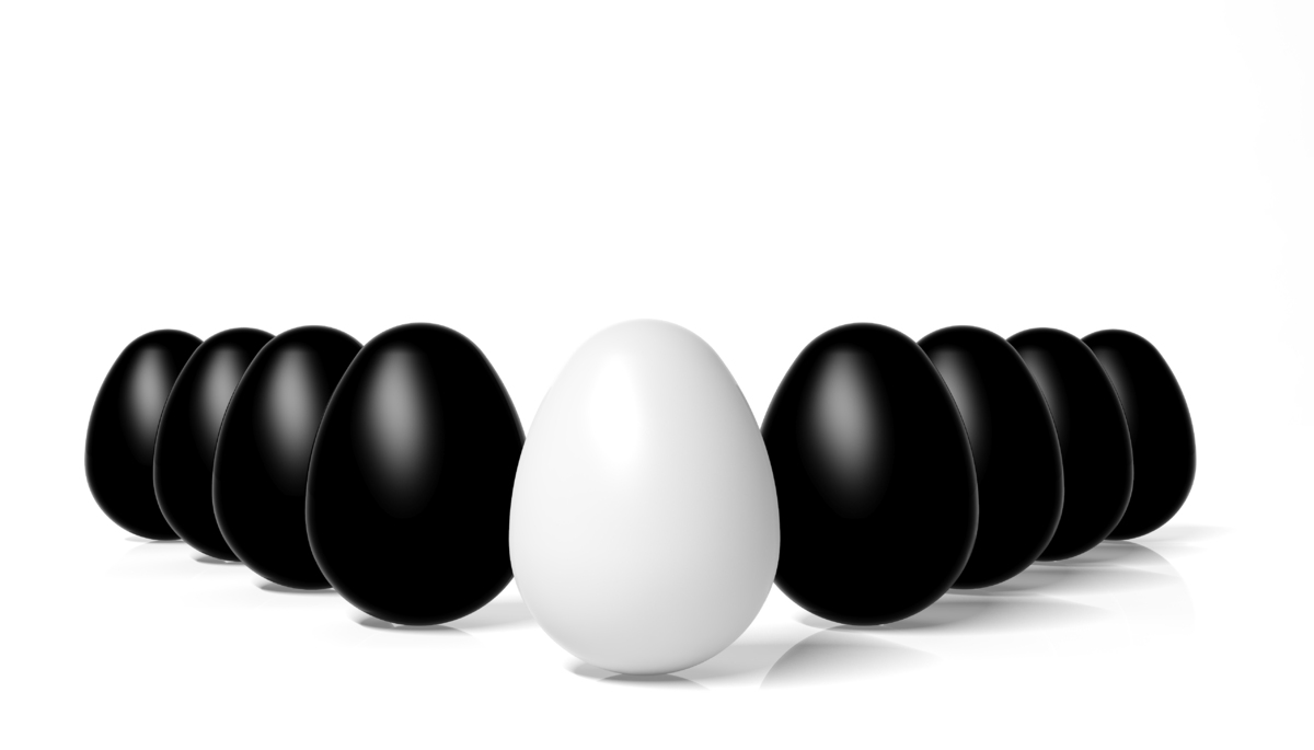 Темное яйцо среди белых