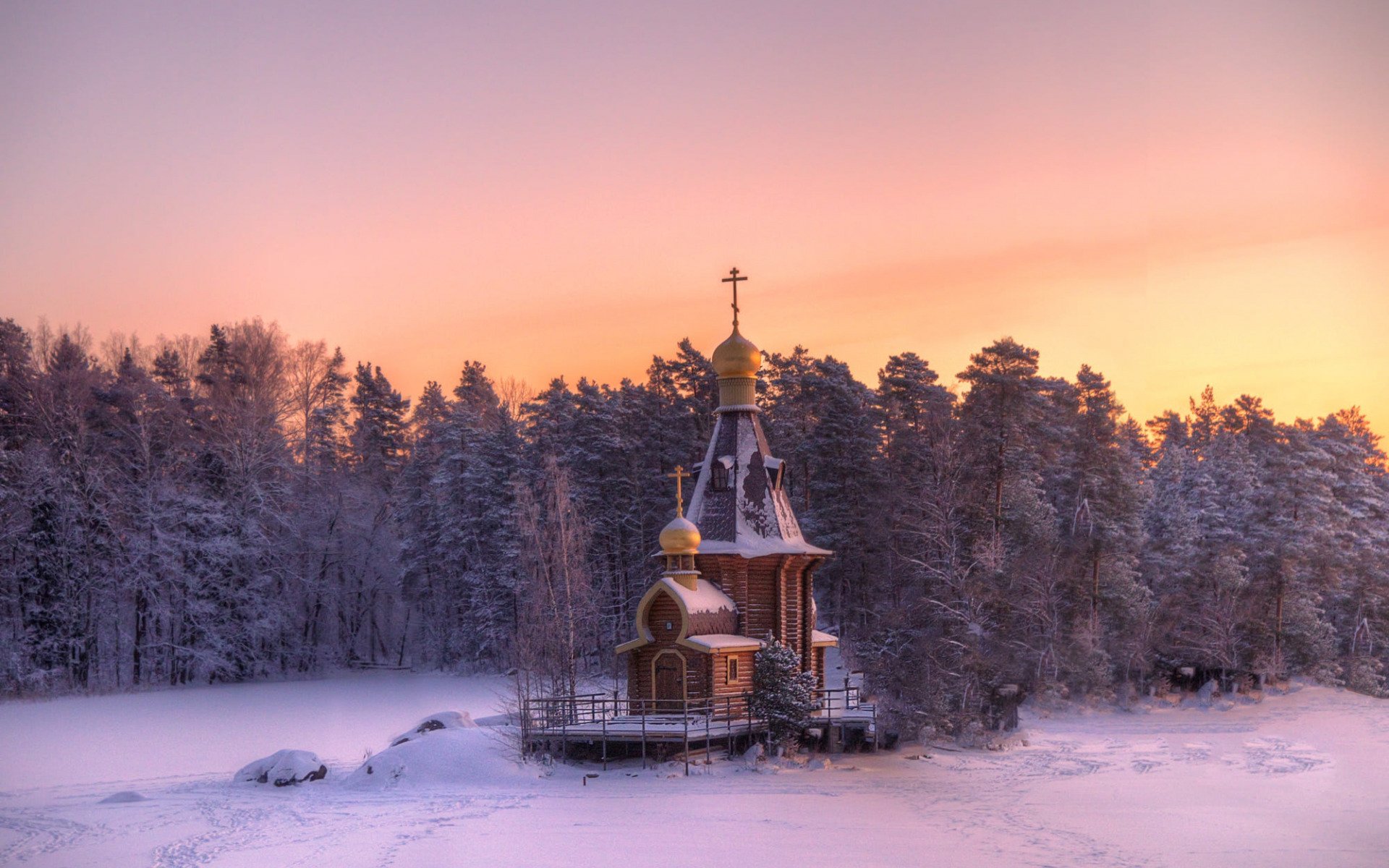 Храм зимой на рассвете