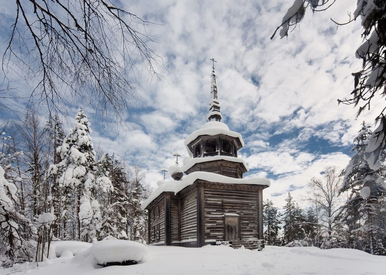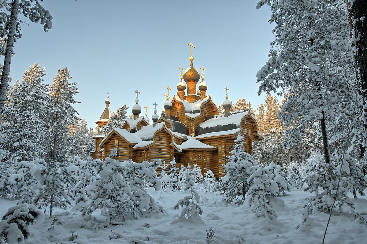 Зима деревянный храм