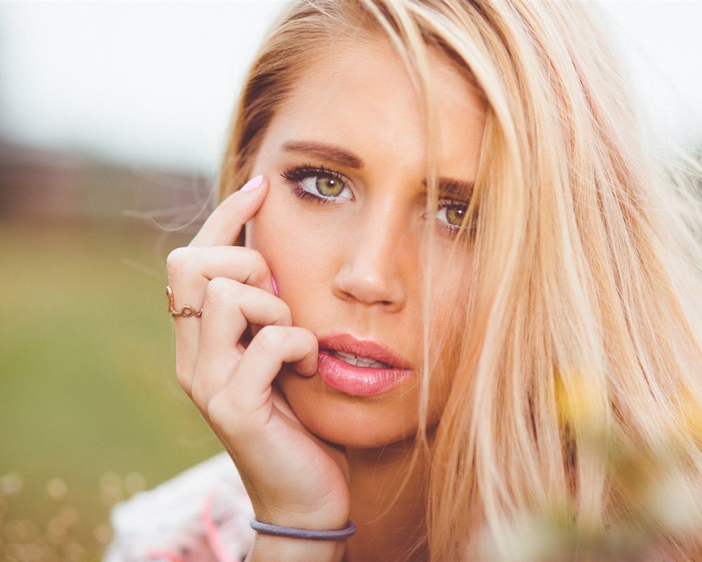 Светловолосая девушка с зелеными глазами